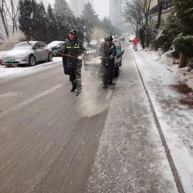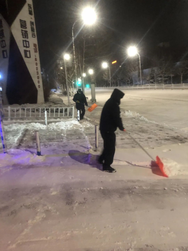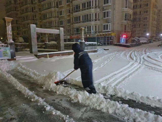 1月21日以來,港城再次迎來持續(xù)降雪,大雪給廣大居民造成出行不便,同時也給物業(yè)人員帶來艱巨任務(wù)。下雪就是命令,見雪就要見行動。凌晨四五點鐘,南堯集團各物業(yè)就快速啟動冰雪天氣應(yīng)急預(yù)案,迅速組織人員開展除雪工作,力求搶在人們出行的高峰期將積雪清理干凈。