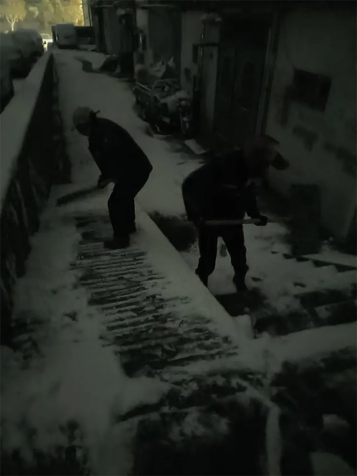 天未亮,雪正酣,物業(yè)人,戰(zhàn)風(fēng)寒