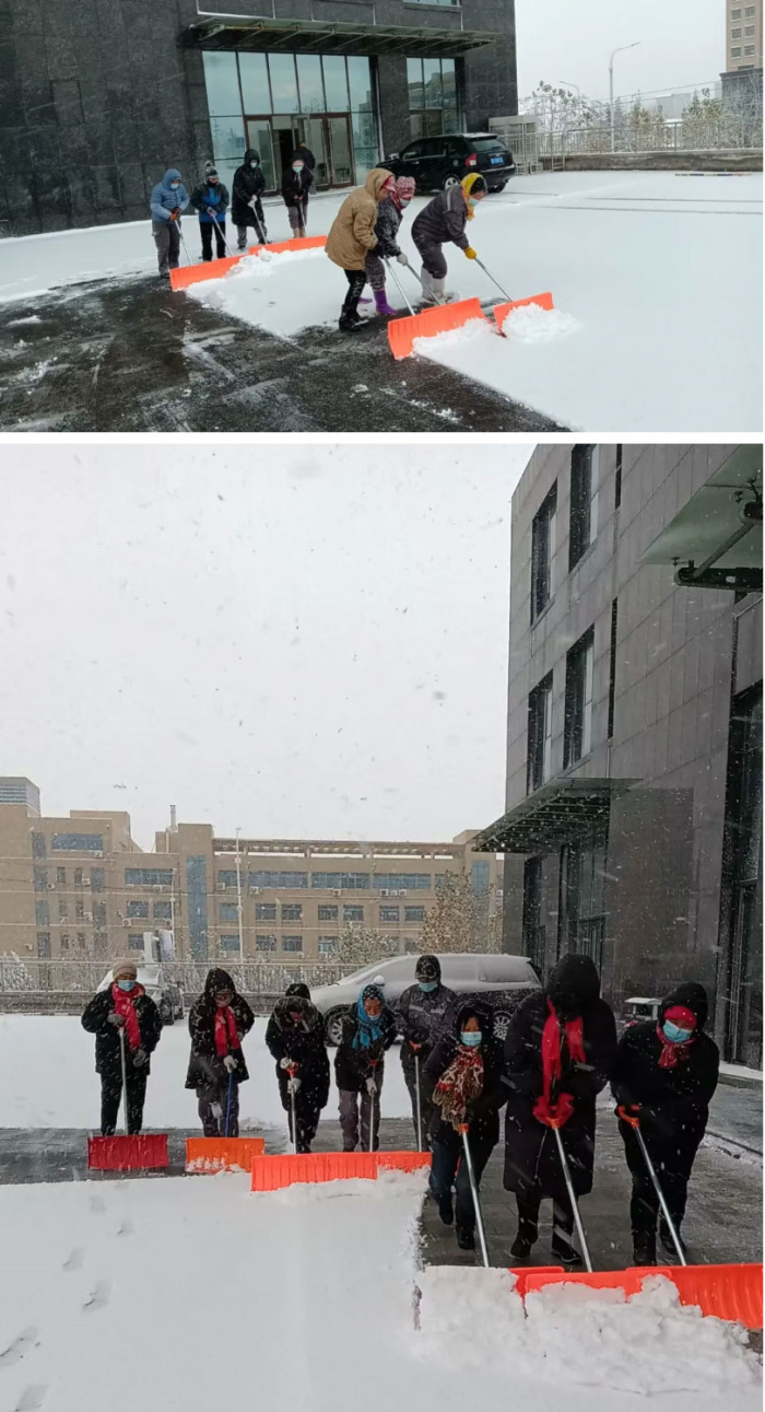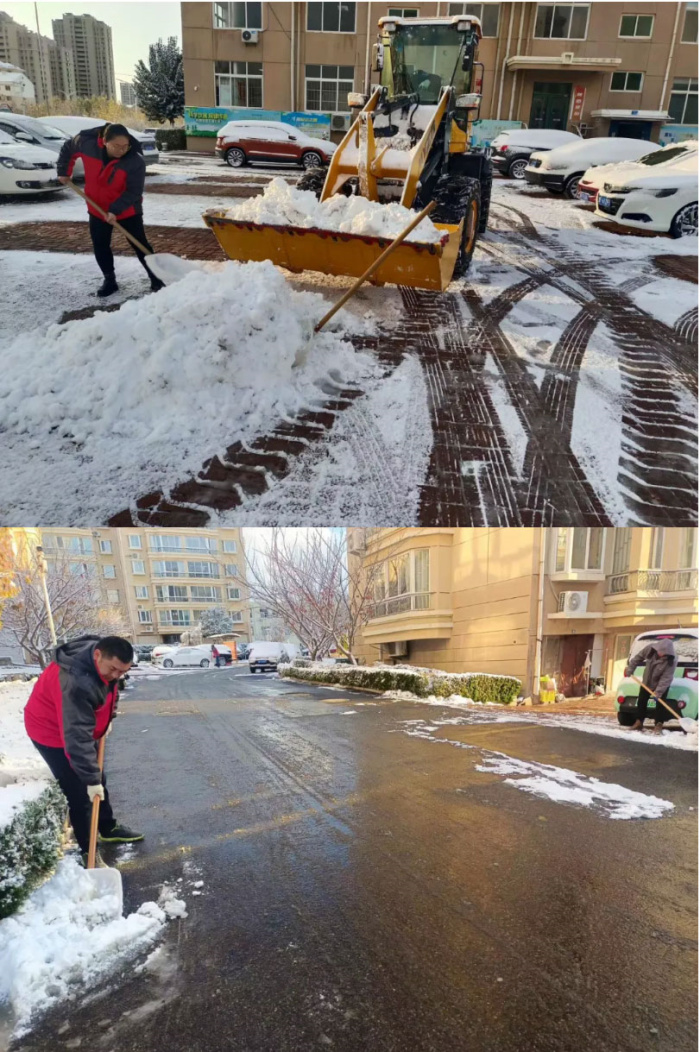 他們或拿著除雪鏟,或手持著掃把等工具,對(duì)主出入口、主干道上的積雪進(jìn)行清理,確保道路通暢。他們用速度詮釋守護(hù),用貼心詮釋暖心,業(yè)主家人們也紛紛為物業(yè)貼心、暖心的除雪行動(dòng)點(diǎn)贊。